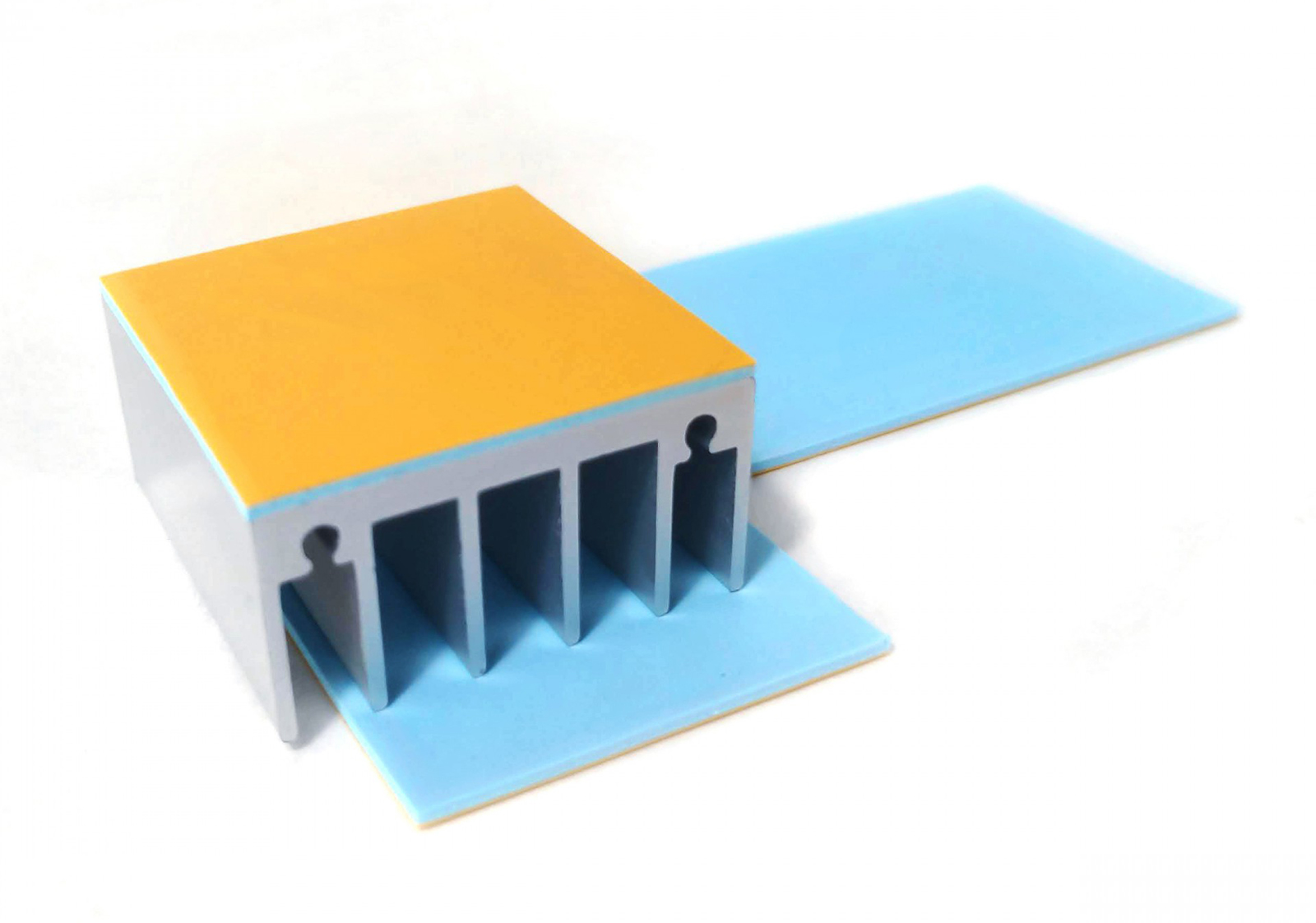 導(dǎo)熱硅膠片只起到導(dǎo)熱作用,在發(fā)熱體與散熱器件之間形成良好的導(dǎo)熱通路,與散熱片,結(jié)構(gòu)固定件(風(fēng)扇)等一起組成散熱模組。