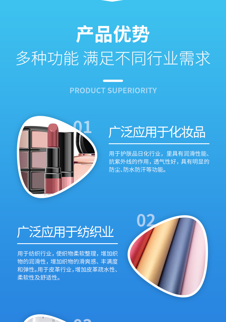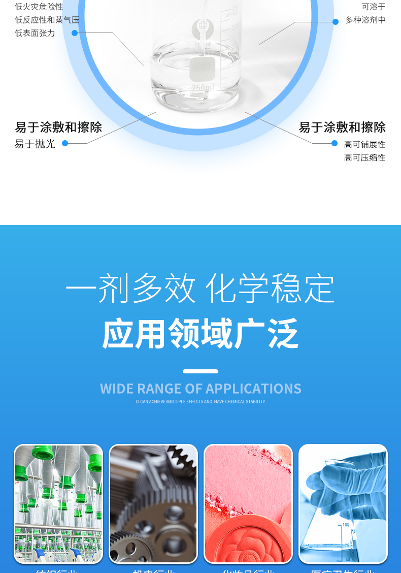 集研發(fā),創(chuàng)新,生產(chǎn),銷售相結(jié)合,重點(diǎn)以生產(chǎn)研發(fā)有機(jī)硅新材料:以二甲基硅油、乙烯基硅油為主,以羥基硅油、有機(jī)硅乳液,氨基硅油,紡織助劑為輔的多元化化學(xué)工廠。